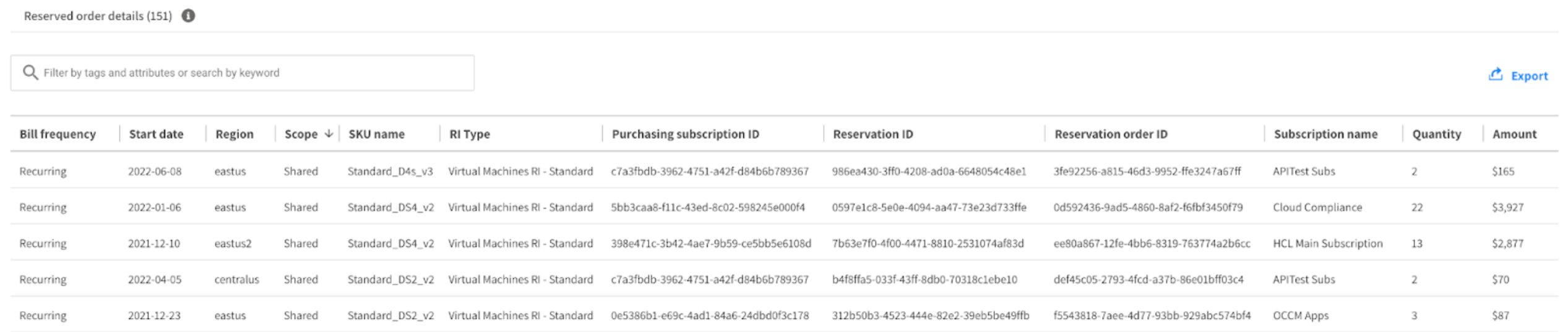 - Bill frequency: Azure reservations can be billing up front or monthly.