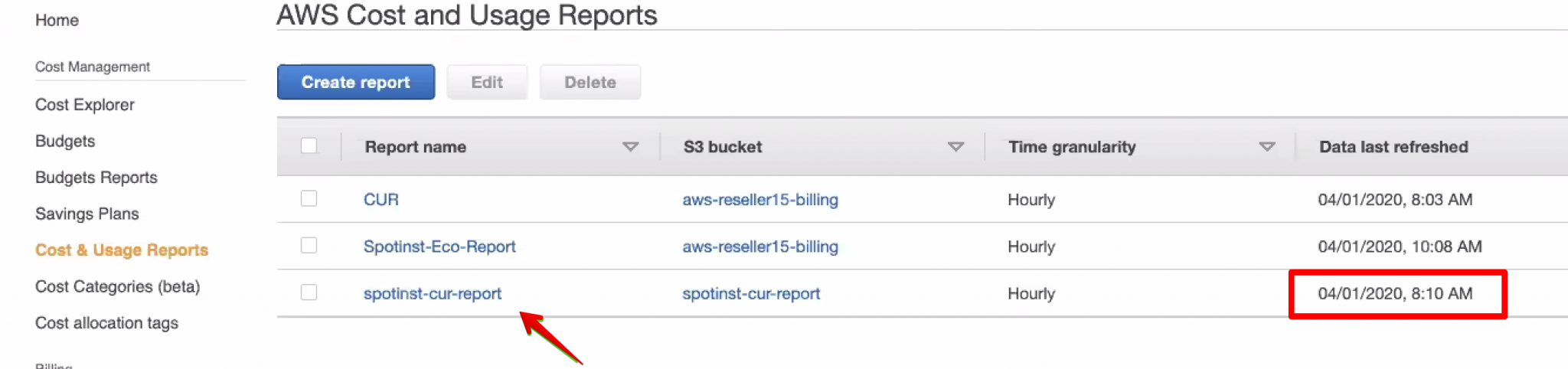 1. Click S3 Buckets, go to the S3 bucket you chose and navigate to: spotinst_eco/spotinst-cur-report.