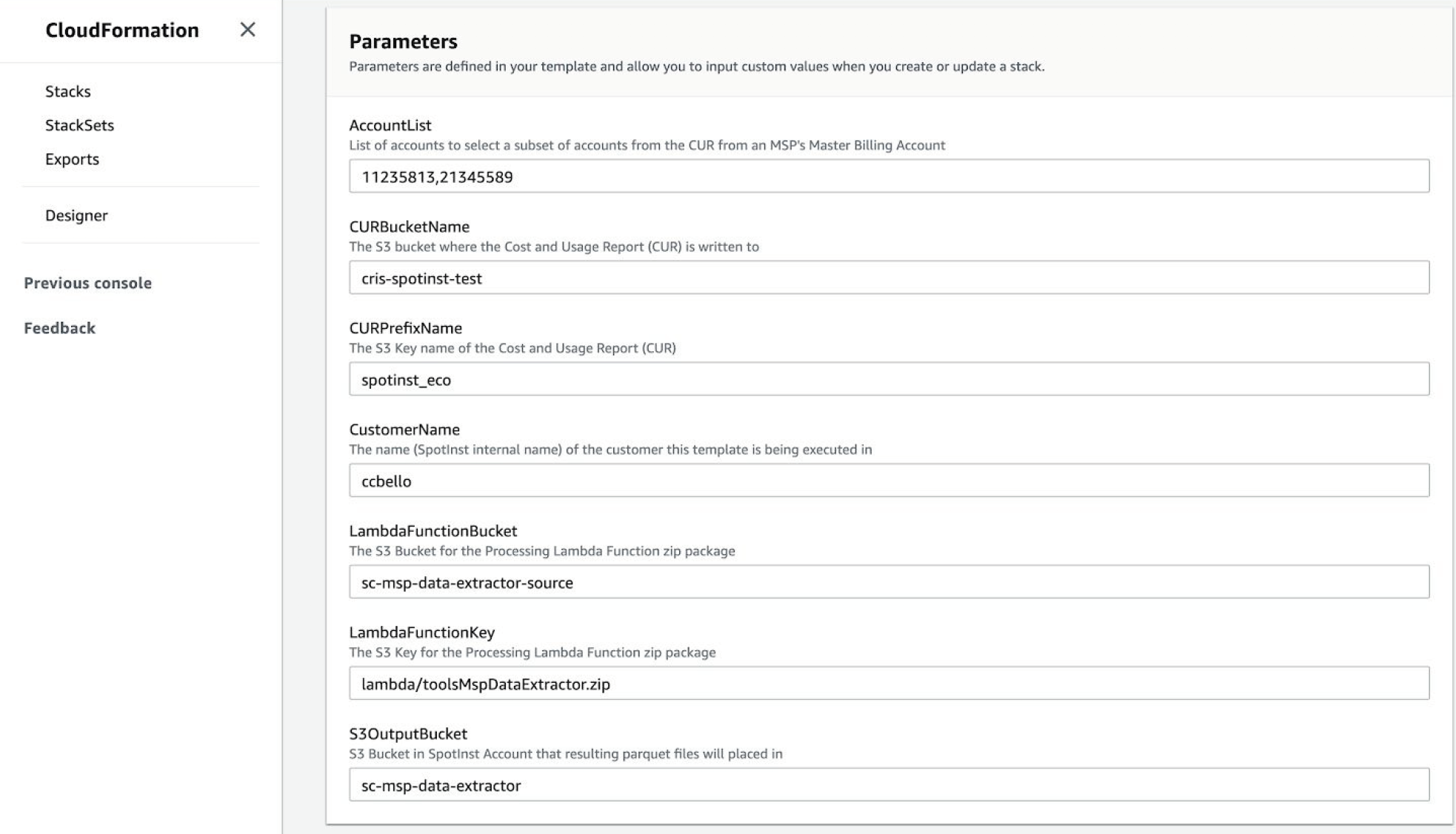 • CURBucketName: Set this to the name of the S3 bucket that you chose in the previous steps for Cost and Usage Reports to write to.